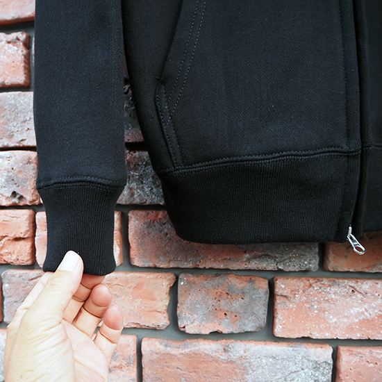 裏地のパイルは、太番手の糸を使用しており、製造行程で、生地水洗いと乾燥を施している為、ごく僅かな使用感?に見える様な箇所もあり、ハードな見た目ですが、肌さわりはとても優しいです。