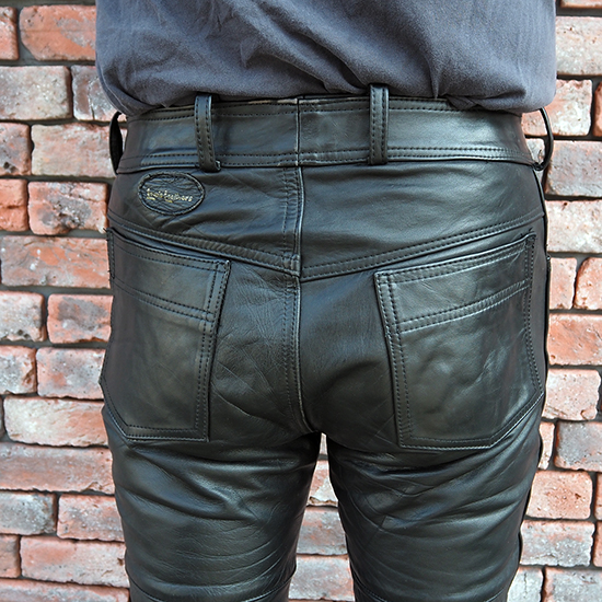 ケツポケは、ジーンズタイプ。Lewis Leathers オーバルレザーパッチあり。ベルトループは、内寸で約5cm弱。