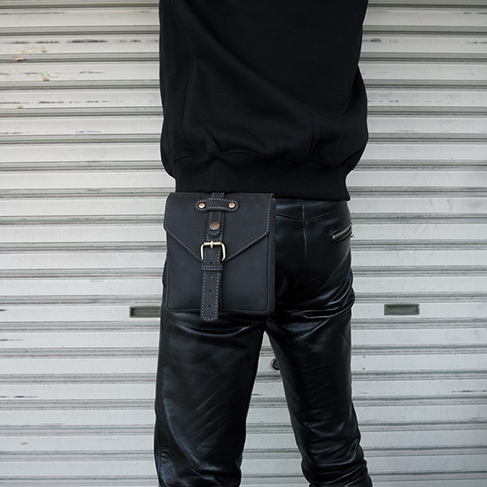 素材: 艶消ブラックレザー牛革 (ヘビーコットン ライニング)