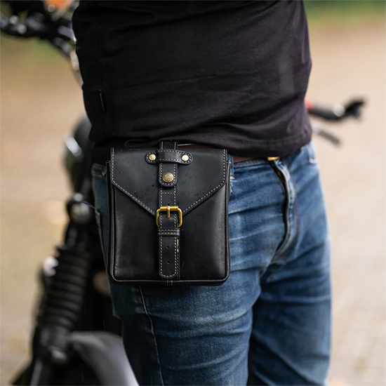 付属のレザーアジャスターを付ければ、ベルトに吊り下げ可能。
